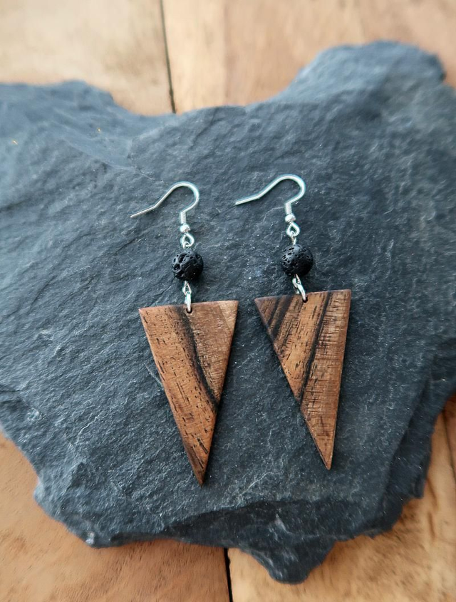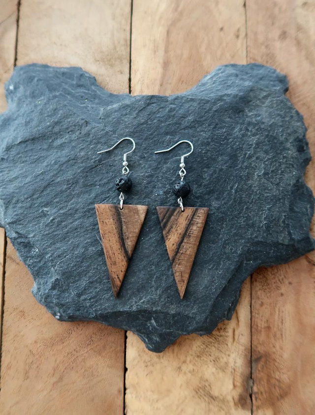 Warmes Nussbaumholz mit einzigartigen Maserungen trifft auf die raue Ursprünglichkeit von Lavastein. Diese handgefertigten Ohrringe sind ein einzigartiges Einzelstück, das mit viel Liebe zum Detail entstanden ist. Feine Unterschiede in Form und Ausführung erzählen von echter Handarbeit und machen jedes Paar unverwechselbar.