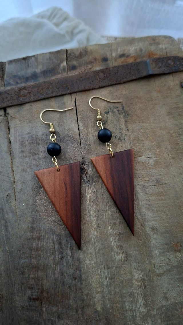 Diese besonderen Ohrringe bringen die dunkle, ausdrucksstarke Maserung von Zwetschgenholz zur Geltung und werden durch den warmen Glanz von Messing ergänzt. Dieses Paar wurde mit viel Liebe zum Detail von Hand gefertigt und ist ein echtes Unikat. Kleine Abweichungen in Form und Ausführung entstehen durch die Handarbeit und machen jedes Schmuckstück einzigartig.