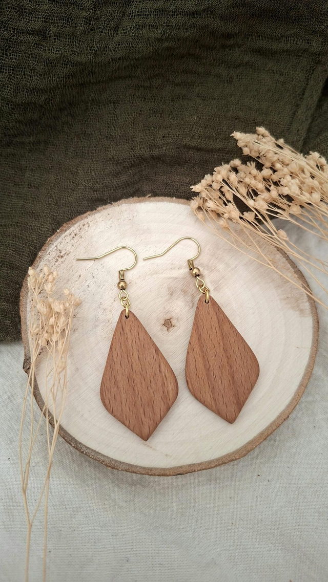 Die sanfte Maserung gedämpfter Buche trifft bei diesen Ohrringen auf einen dezenten Goldton. Ein ruhiges, natürliches Schmuckstück mit warmer Ausstrahlung. In sorgfältiger Handarbeit gefertigt, entstand dieses Paar als echtes Unikat. Kleine Abweichungen in Form und Ausführung sind Ausdruck der handwerklichen Fertigung und machen jedes Schmuckstück einzigartig.