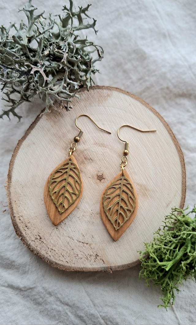 Diese besonderen Ohrringe verbinden die warme, rötliche Maserung von Kirschholz mit dem sanften Glanz von Messing. Dieses Paar wurde mit viel Liebe zum Detail von Hand gefertigt und ist ein echtes Unikat. Kleine Abweichungen in Form und Ausführung entstehen durch die Handarbeit und machen jedes Schmuckstück einzigartig.