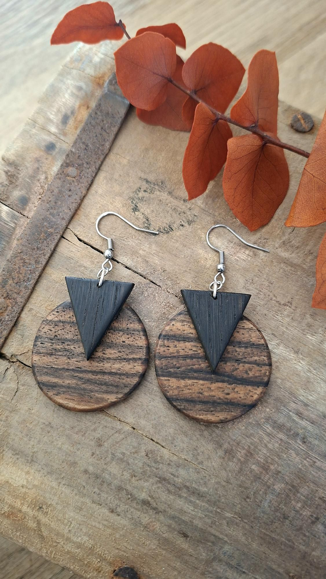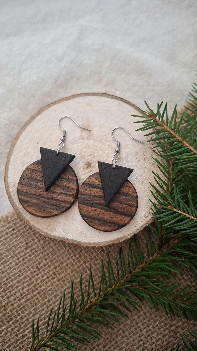 Diese besonderen Ohrringe vereinen die warme Ausstrahlung von Nussbaumholz mit der charaktervollen Tiefe von Räuchereiche. Dieses Paar wurde mit viel Liebe zum Detail von Hand gefertigt und ist ein echtes Unikat. Kleine Abweichungen in Form und Ausführung entstehen durch die Handarbeit und verleiht diesen Ohrringen einen individuellen Charakter.
